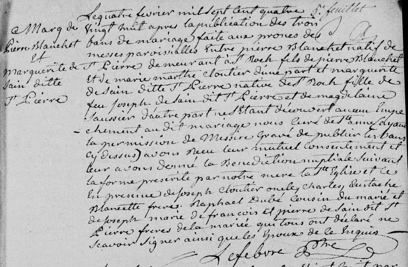 Peirre Blanchet and Marguerite deSaint-de-St-Pierre marriage